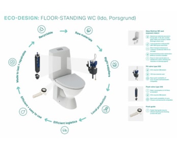 Velg miljøvennlige løsninger med Porsgrund. Våre toaletter og servanter er laget av slitesterkt sanitærporselen og er nå optimalisert for ombruk, demontering og gjenbruk – helt uten miljøskadelige stoffer.